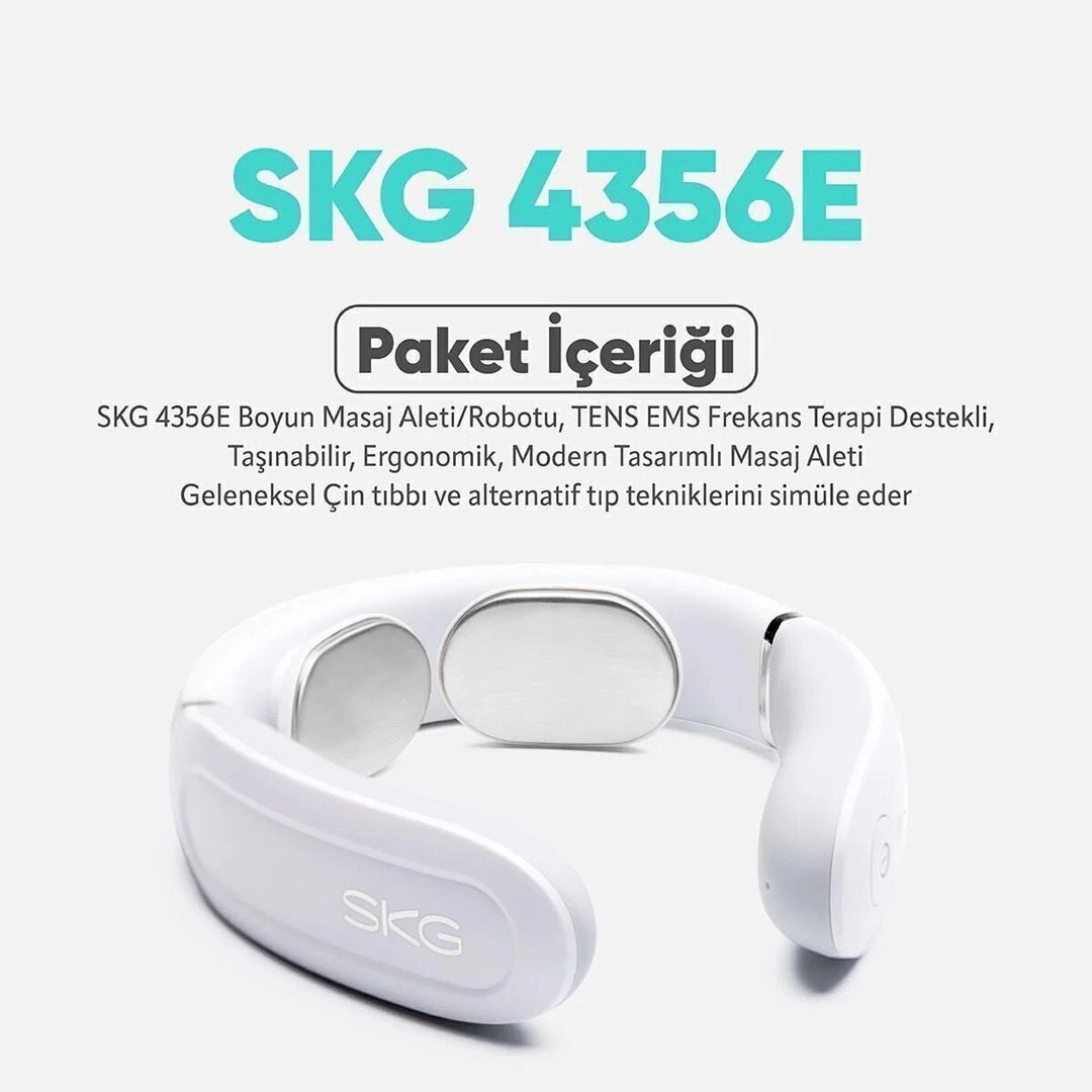 SKG 4356E Boyun Masaj Aleti (TENS/EMS Özelliği), ergonomik ve taşınabilir yapısı ile dikkat çekmektedir.