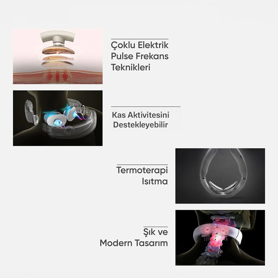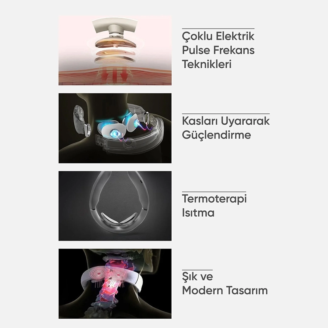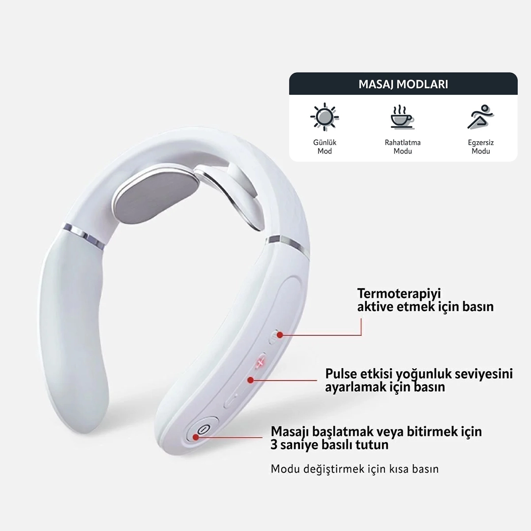 Cihaz, 107.6°F sabit sıcaklıkta sıcak kompres uygulayarak boyun yorgunluğunu hafifletir.